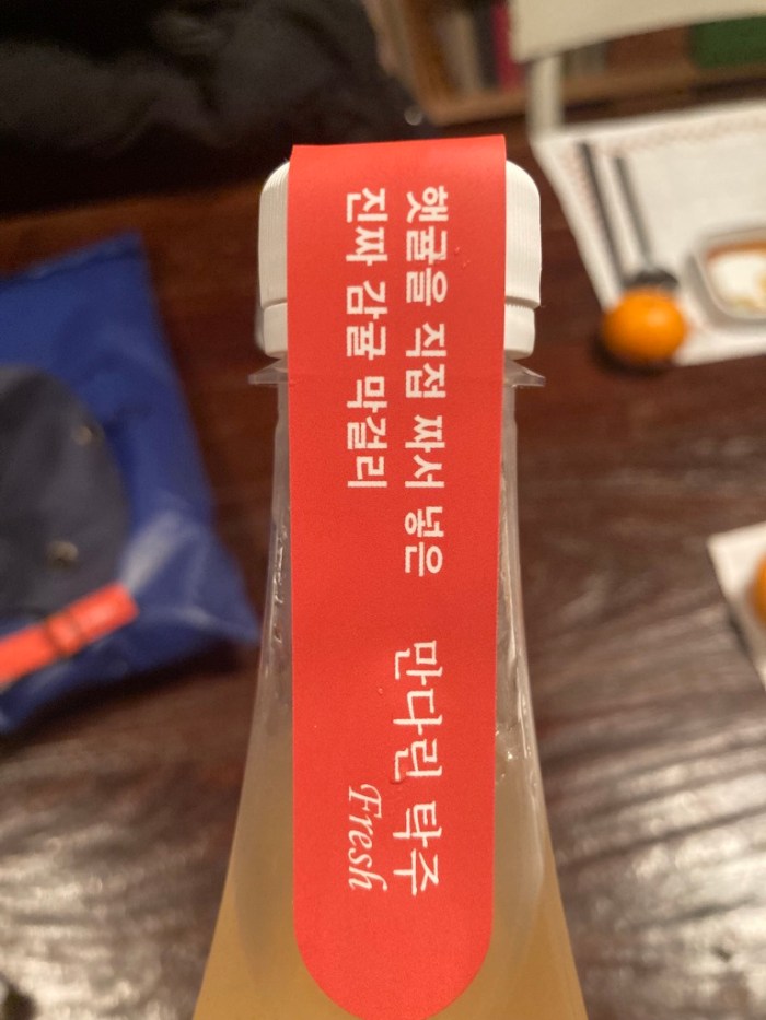 작년에 수확한 우리 귤로 만든 막걸리가 왔다. 맛이 너무도 아름답다.